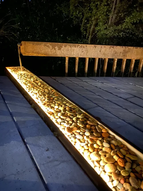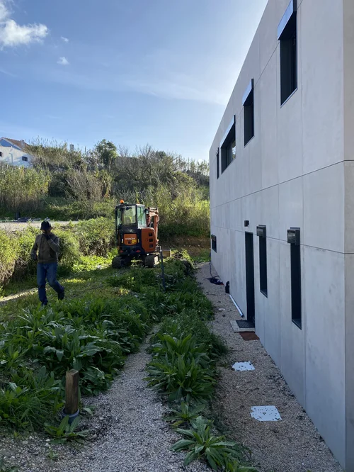 With this intention, we brought back the memory of the countryside, representing irrigation laid out through ditches that connect trees and water cubes, evoking an abandoned waterwheel.